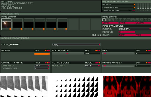 mut.ant ist eine Bildsynthesizer-Software. Verschiedene Module zur Bilderzeugung und -veränderung können zu einer Vielzahl