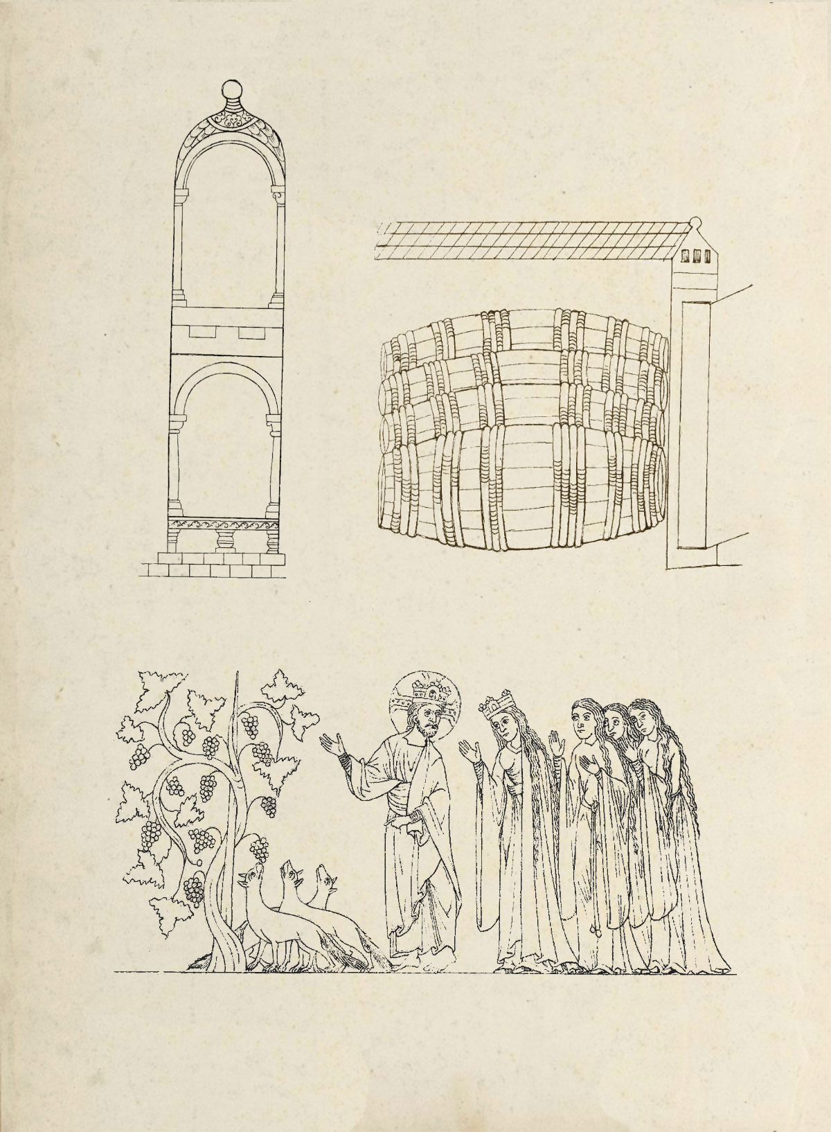 Fol. 225rChristus introducit ecclesiamin cellam vinariam (fragmenta)Vulpes in vinea